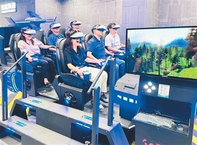 體驗館里,游客體驗《元創(chuàng)芷江》裸眼3D,重回1938年,身臨其境地看到1.9萬余名民工修筑二戰(zhàn)時期盟軍遠(yuǎn)東第二機場——芷江機場的場景。近年來,紀(jì)念館不斷創(chuàng)新展陳方式,推出和平藝術(shù)中心“元宇宙”科技體驗館,以數(shù)字化“元宇宙”科技融合手段,打造愛國主義教育研學(xué)品牌,提升研學(xué)游附加值。體驗館分為14個體驗區(qū)域,運用VR、AR、3D裸眼等沉浸式技術(shù),為游客提供高度虛擬化沉浸式的芷江抗戰(zhàn)歷史故事體驗。