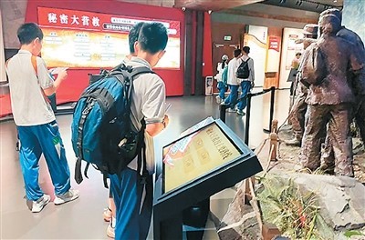 游客步入館內(nèi),仿佛踏入歷史的洪流。全息投影、文物陳列、場景復(fù)原等技術(shù)打造出數(shù)字化展陳空間。曾經(jīng)只能在文字和圖片中描繪的歷史場景,如今栩栩如生地呈現(xiàn)在眼前。在秘密大營救展區(qū),雕塑還原文化名人在游擊隊員護(hù)送下離開的場景,當(dāng)觀眾點擊多媒體互動裝置選擇不同的撤退路線時,大屏幕會動態(tài)還原當(dāng)時驚險的轉(zhuǎn)移路徑,讓人如同身在其中,真切感受到革命先輩在槍林彈雨中的英勇機智。來自廣州的黃同學(xué)說:“有了這些多媒體設(shè)備,讓我更直觀了解到當(dāng)時槍林彈雨的危險場景,也更好地學(xué)習(xí)了東江縱隊的歷史。”