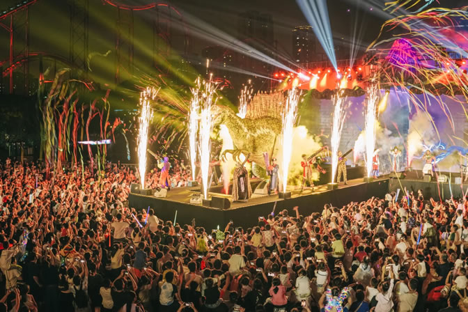不僅有奇幻新世界,更有奇趣新體驗(yàn)。劇場(chǎng)里,《復(fù)活恐龍D計(jì)劃》魔法秀展現(xiàn)恐龍主題趣味魔法,《魯樂回家》音樂劇傳遞人與自然之間的溫暖,《恐龍島危機(jī)》特技表演詮釋冒險(xiǎn)旅途的驚險(xiǎn)刺激;項(xiàng)目前,“百龍軍團(tuán)”“角角見面會(huì)”“邂逅侏羅紀(jì)”等仿真恐龍的快閃互動(dòng)實(shí)現(xiàn)了游客“與龍同行”的震撼奇觀;巡游中,“怪獸天團(tuán)”“逗趣南瓜團(tuán)”“鬼馬精靈”花車巡游從日落到夜幕,一路載歌載舞,在全新“奇幻D秀”結(jié)合電音派對(duì)點(diǎn)亮夜空與舞臺(tái),為大小游客留下難忘的假日歡樂。
