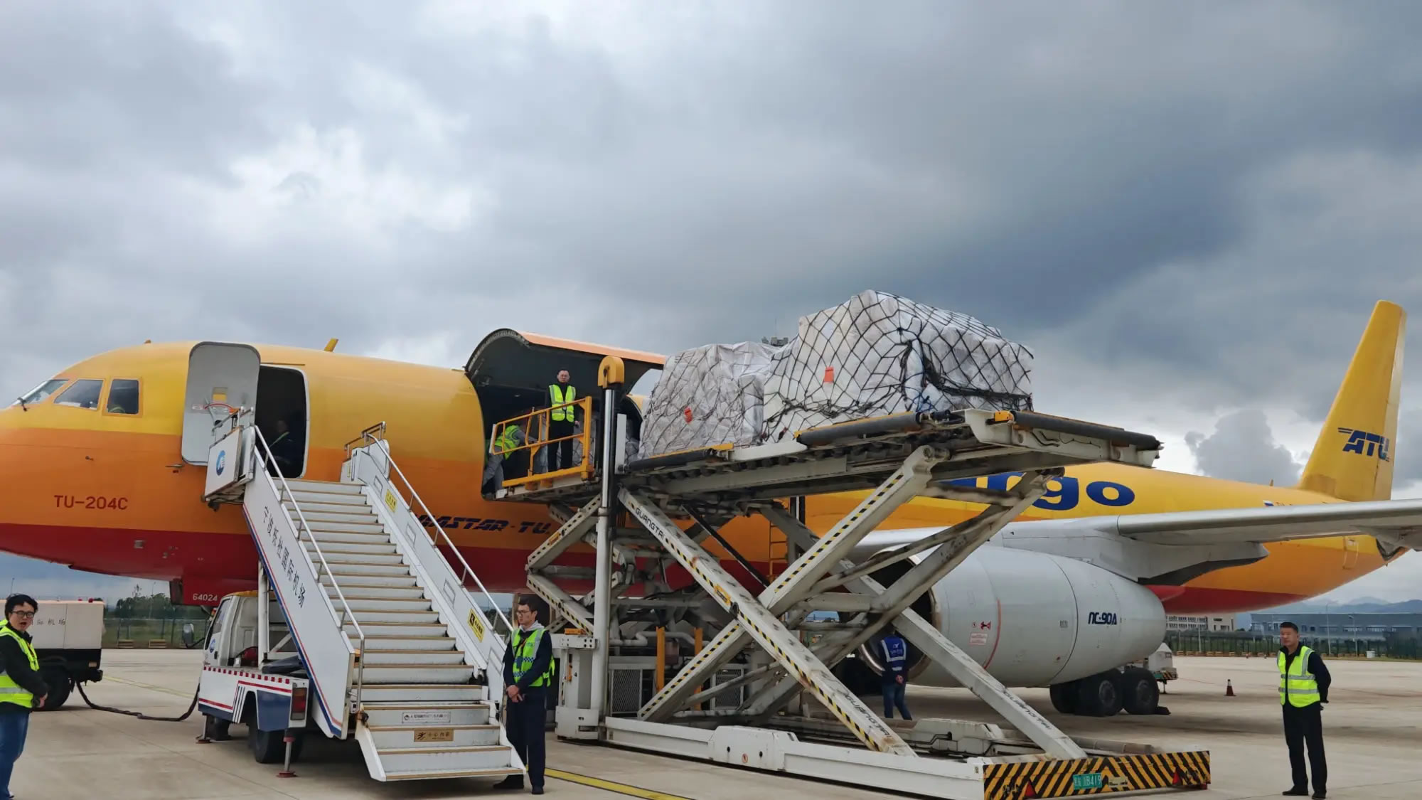 TU204C全貨機裝貨現場(央廣網發(fā) 寧波機場供圖)